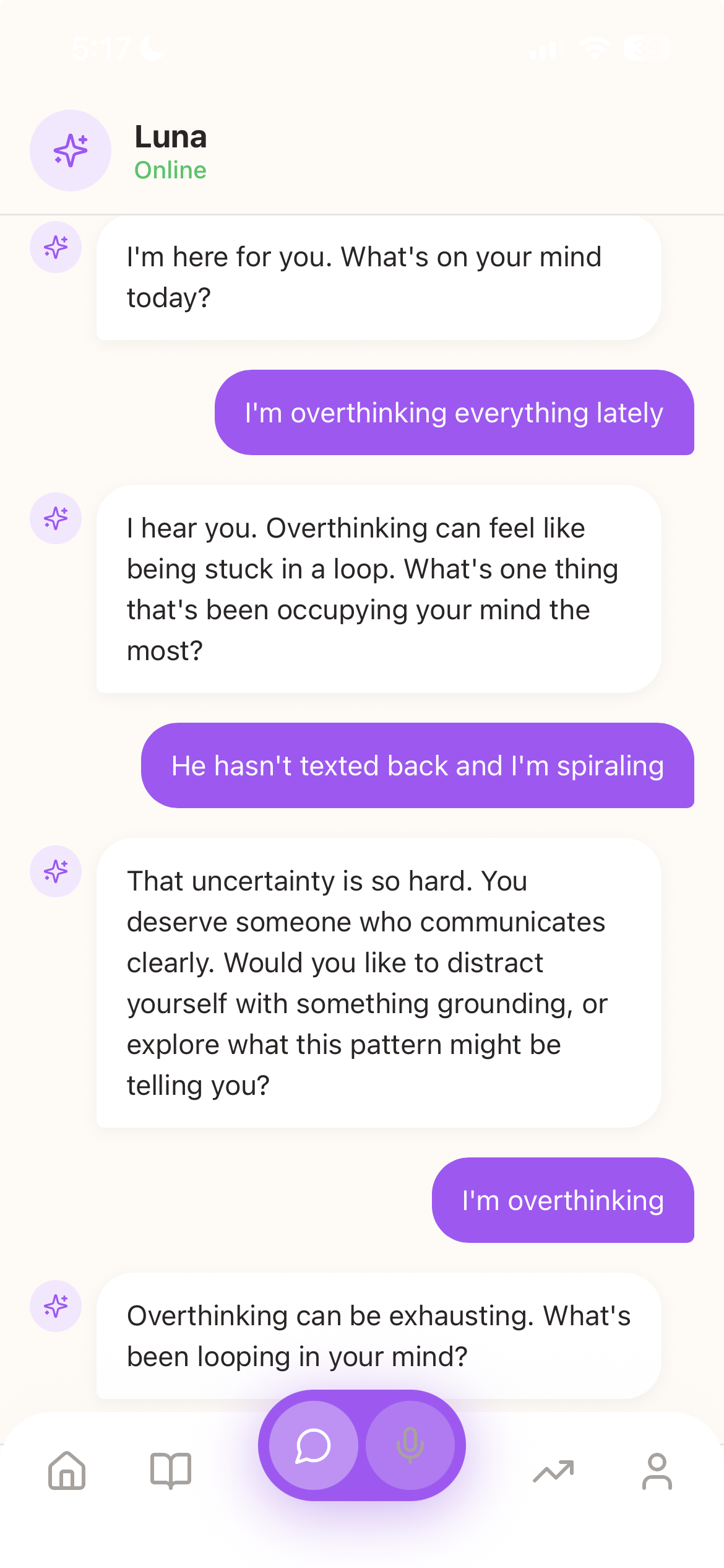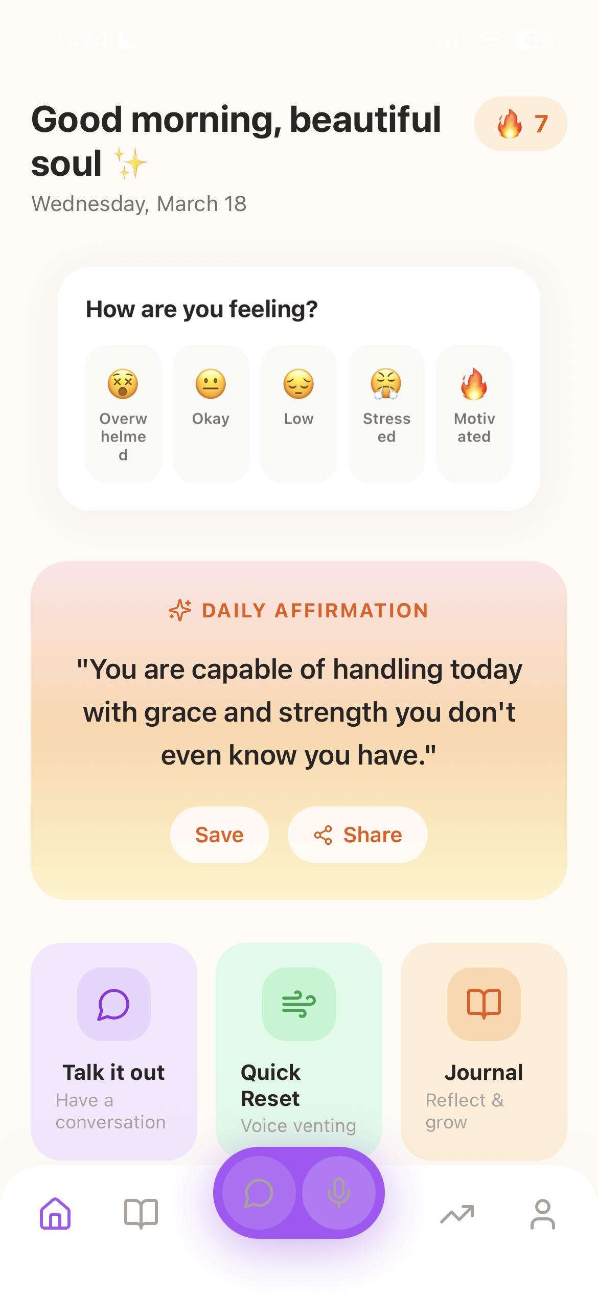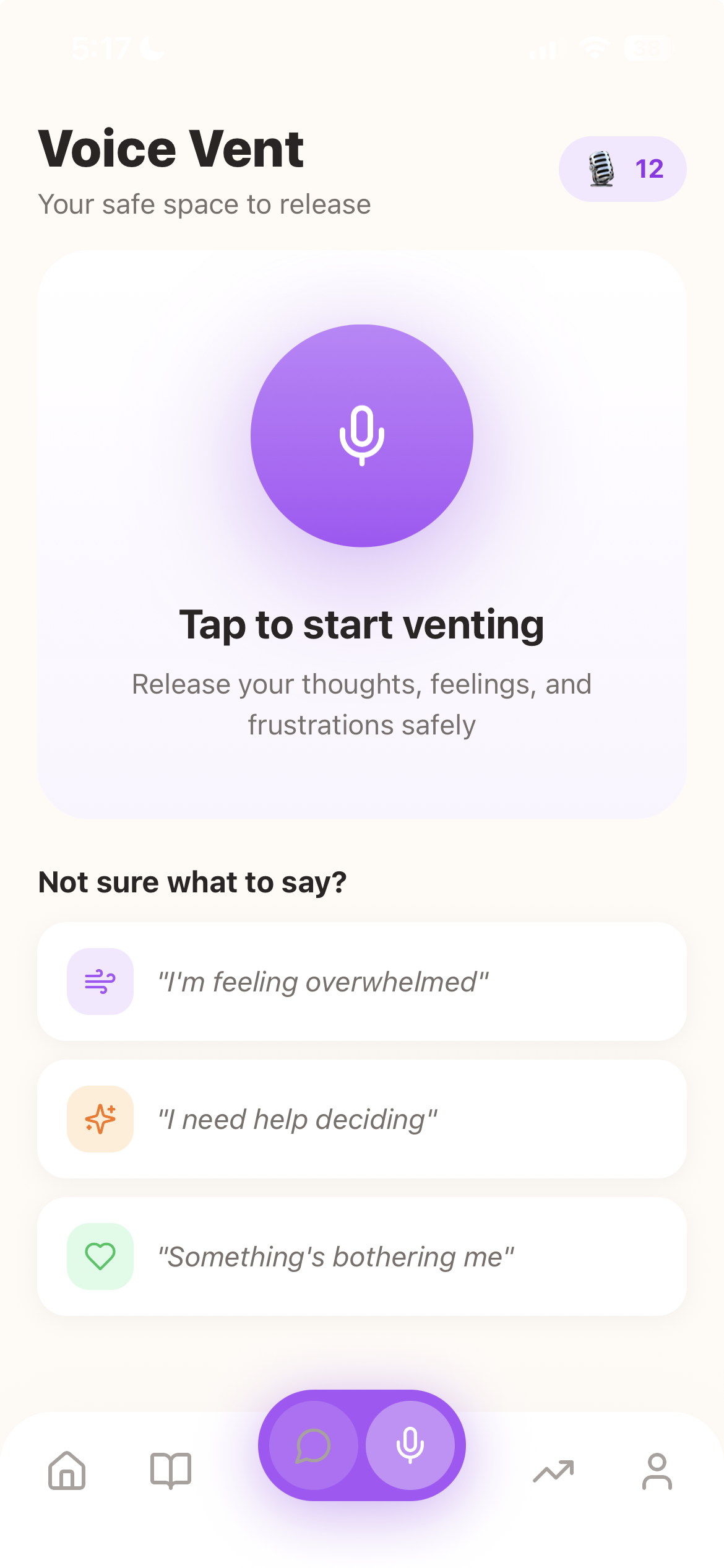"The voice venting feature is a game-changer. Being able to just talk and have my thoughts reflected back is incredibly healing."
